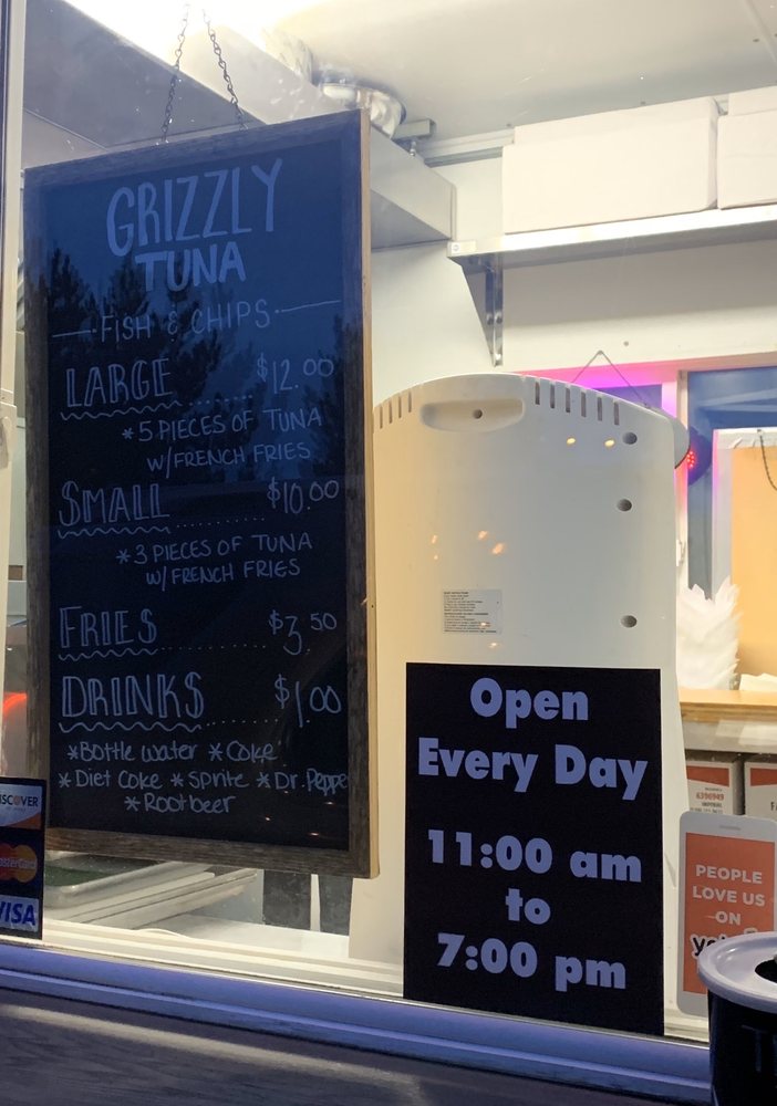 Grizzly Tuna is a casual fish and chips restaurant located in Seaside, Oregon, offering a variety of food options. Customers rave about the tasty fish tacos and fish and chips, mentioning the firm and flavorful tuna with a crunchy panko breading. The establishment provides a drive-thru option and limited outdoor seating with picnic tables. The friendly service and quick delivery of food make for a pleasant dining experience. The menu also includes vegetarian options, Happy Hour specials, and alcoholic beverages. Overall, Grizzly Tuna is praised for its delicious dishes and efficient service, making it a must-try spot for seafood lovers in the area.
